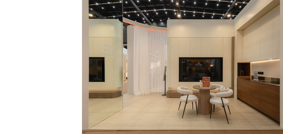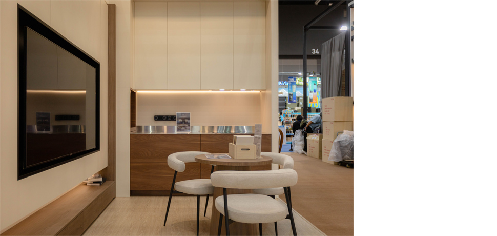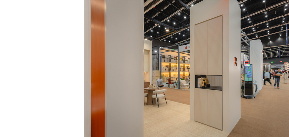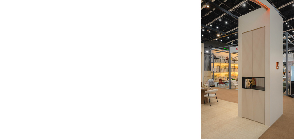 design and craftsmanship. Every element within the booth is carefully arranged to create a harmonious spatial rhythm, allowing the products